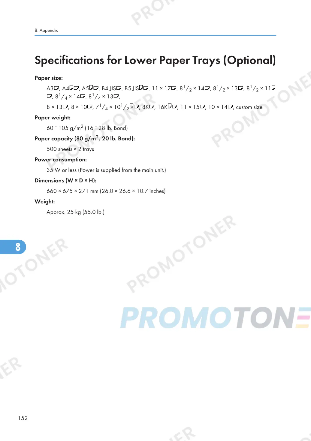 A3 , A4 , A5 , B4 JIS , B5 JIS , 11 × 17 , 8