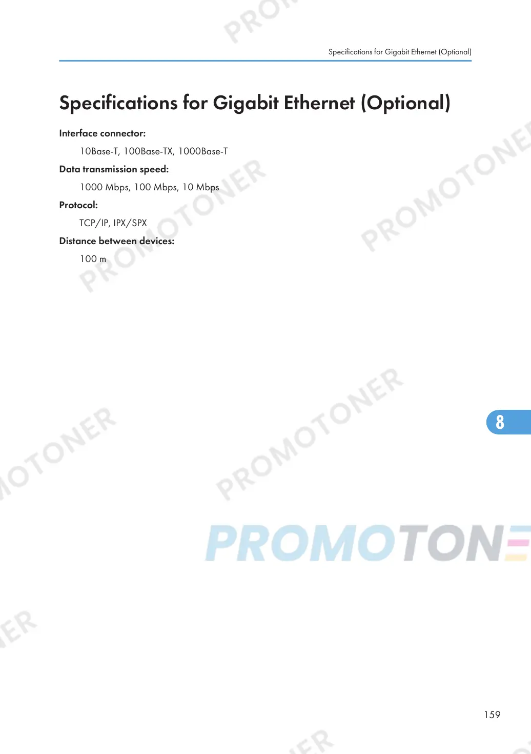 Aficio MP C2551 - Specifications for Gigabit Ethernet (Optional)