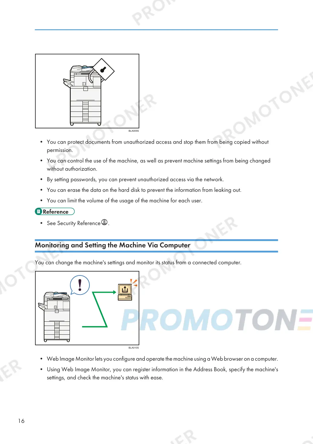• You can control the use of the machine, as well as prevent machine settings from being changed