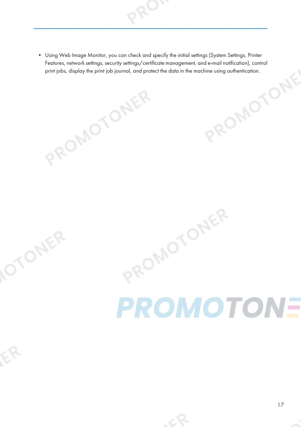 print jobs, display the print job journal, and protect the data in the machine using authentication.