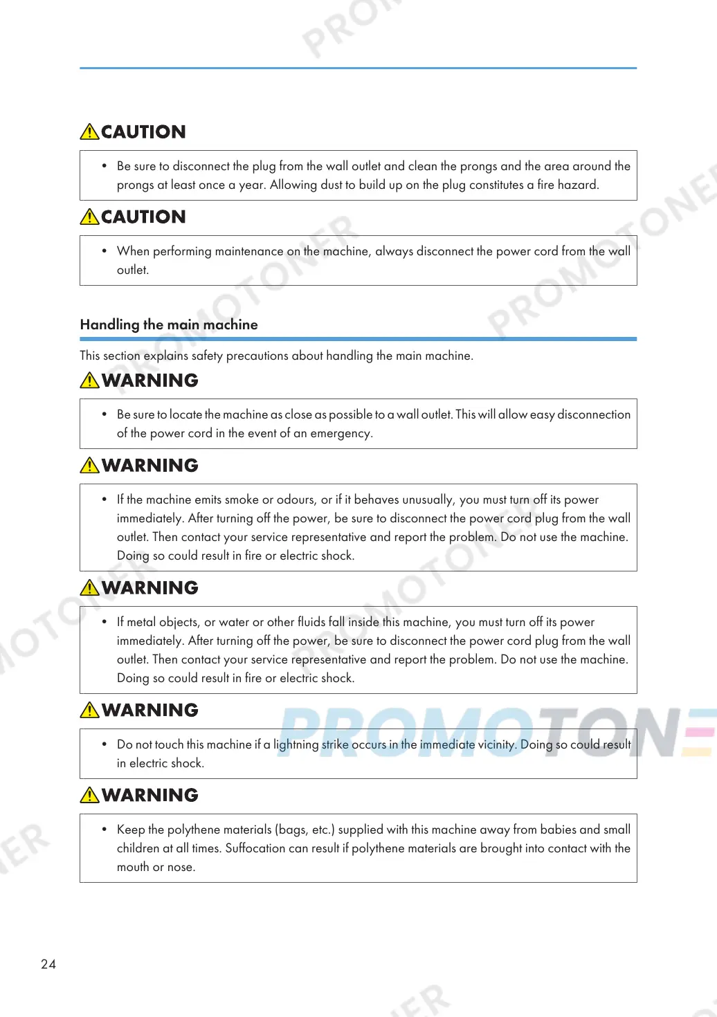 Do not touch this machine if a lightning strike occurs in the immediate vicinity. Doing so could result