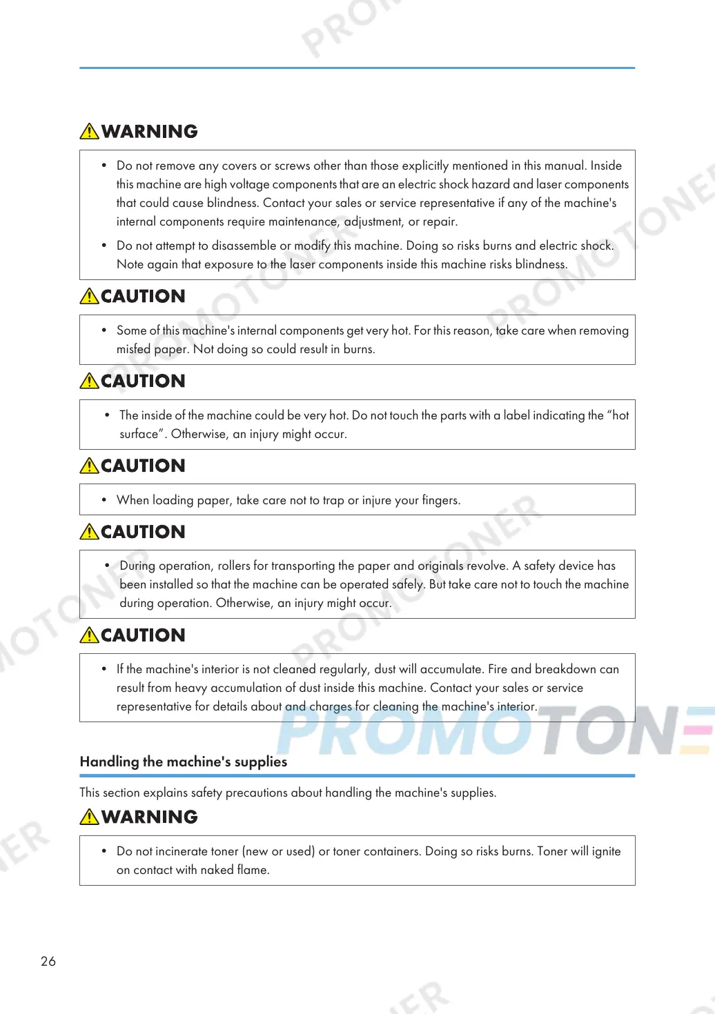 • Some of this machine's internal components get very hot. For this reason, take care when removing