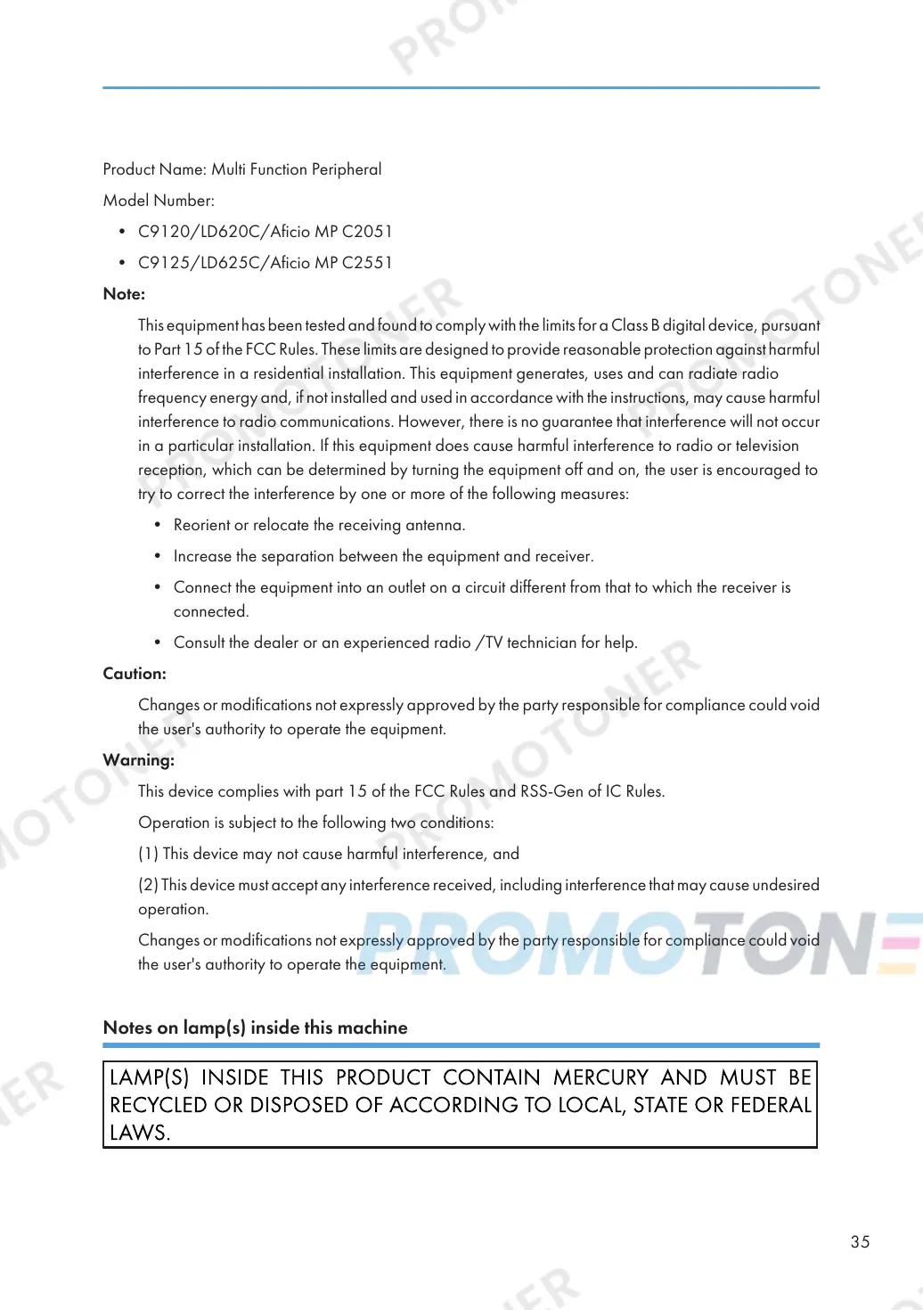 • C9125/LD625C/Aficio MP C2551