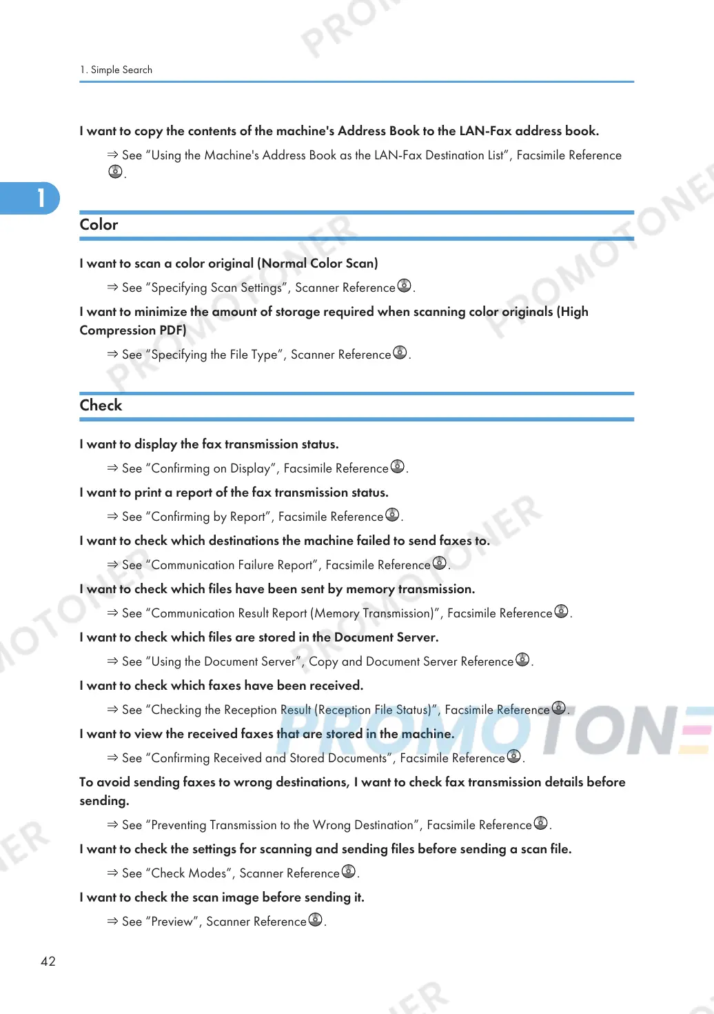 See “Confirming Received and Stored Documents”, Facsimile Reference .