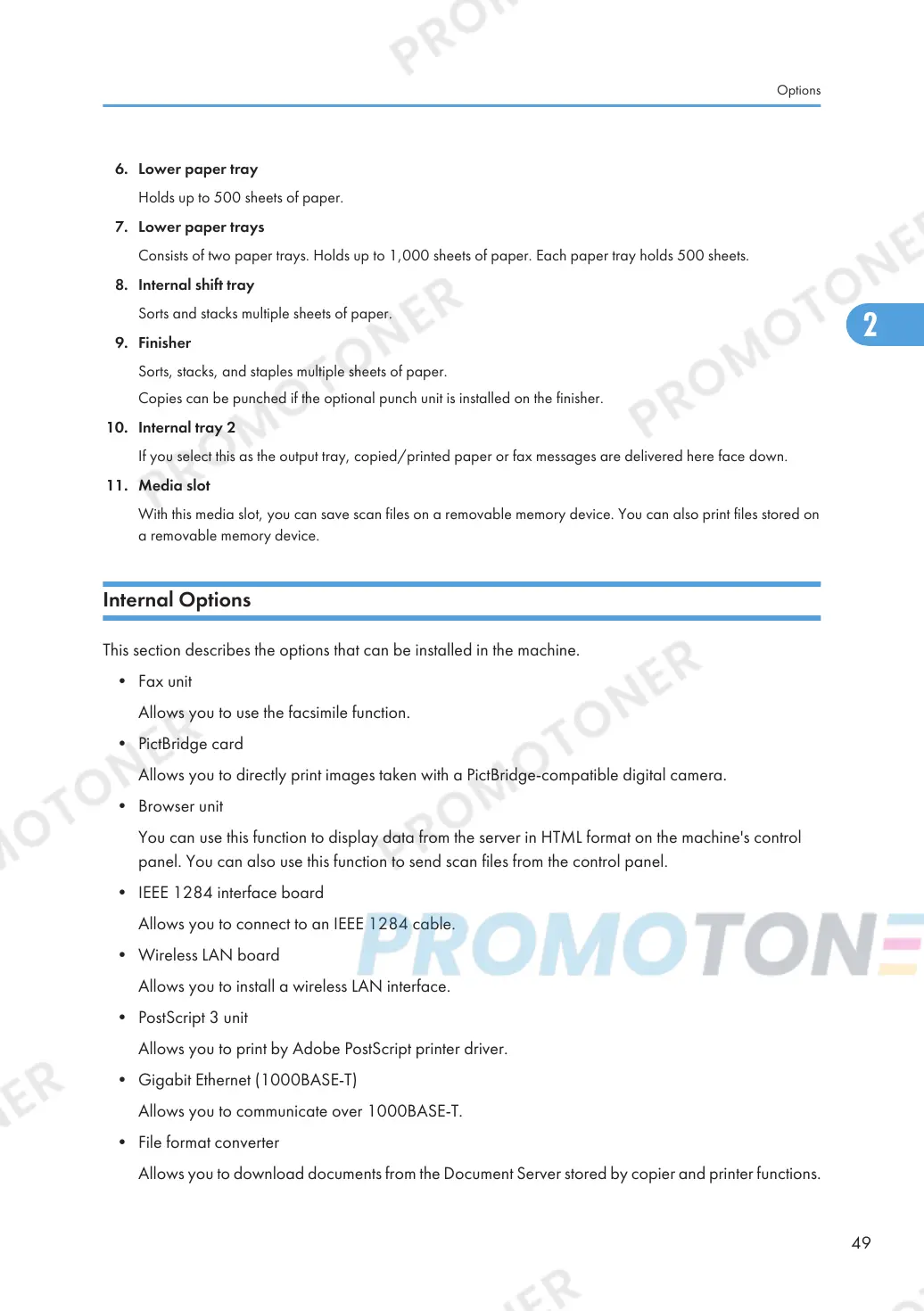 This section describes the options that can be installed in the machine.
