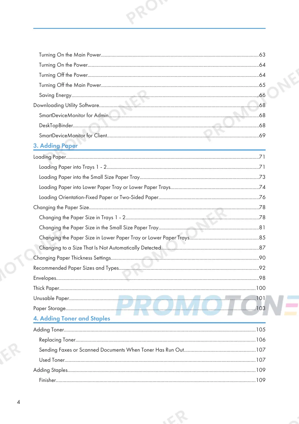 Adding Toner.................................................................................................................................................105