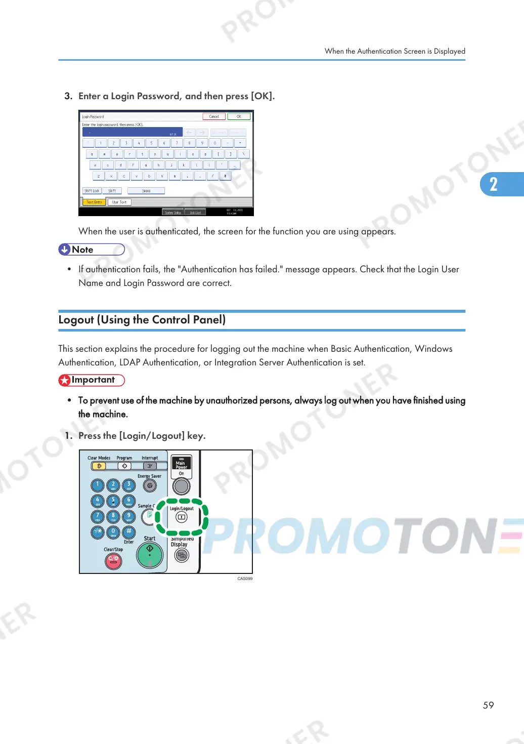 1. Press the [Login/Logout] key.