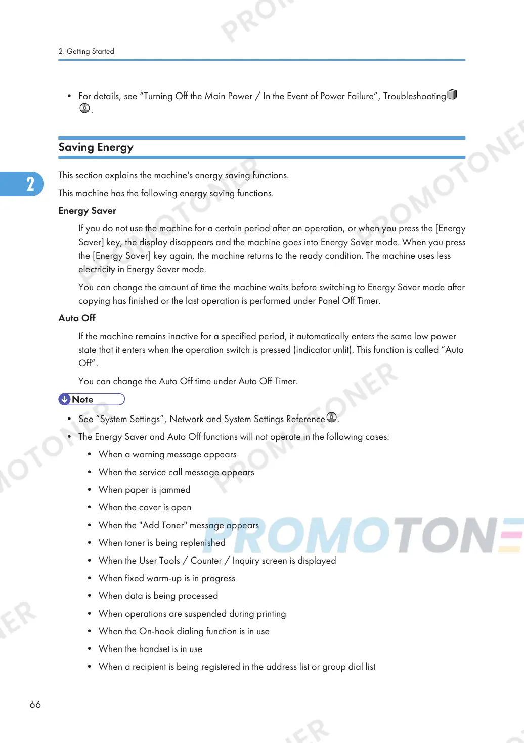 This machine has the following energy saving functions.