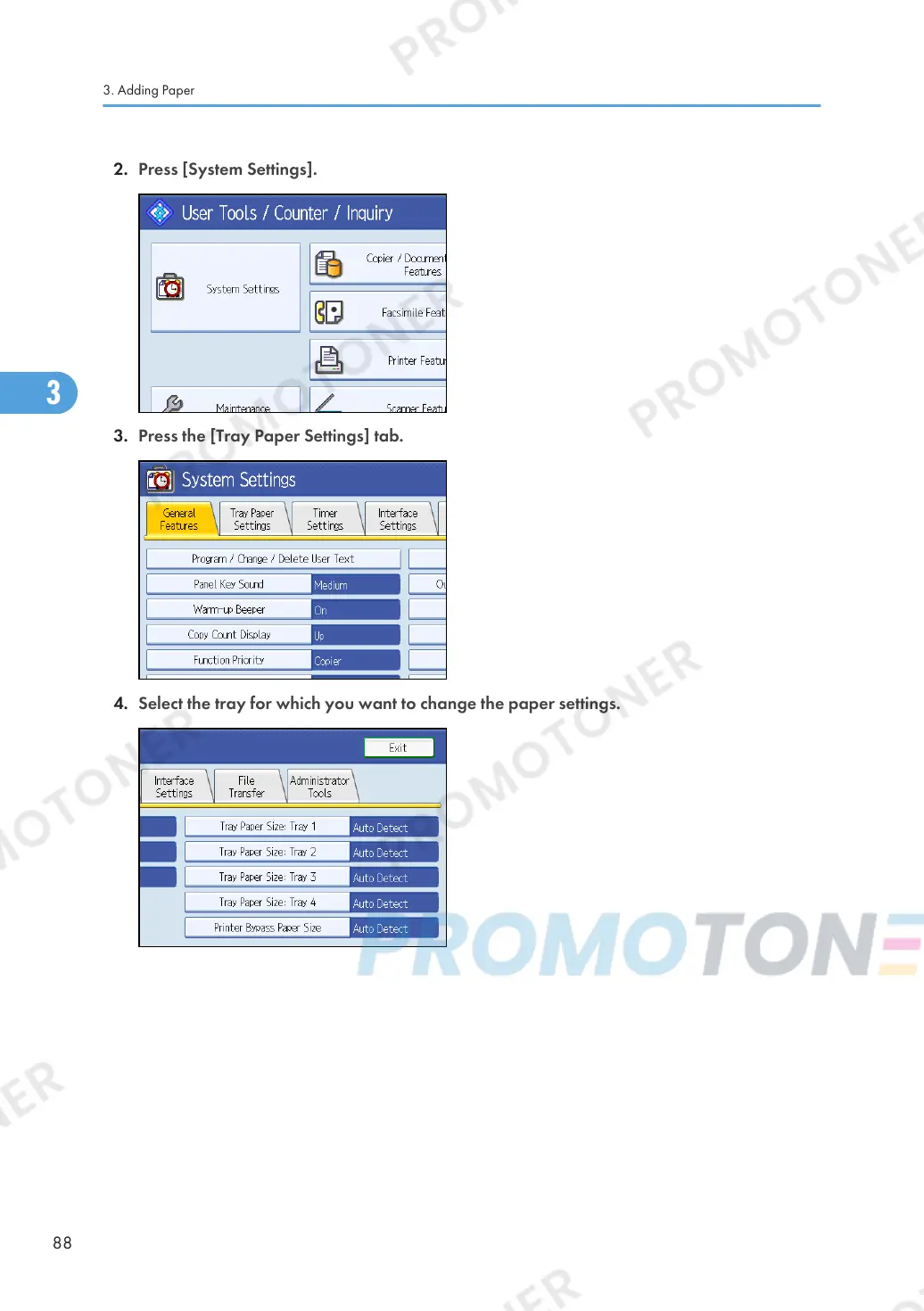 3. Press the [Tray Paper Settings] tab.