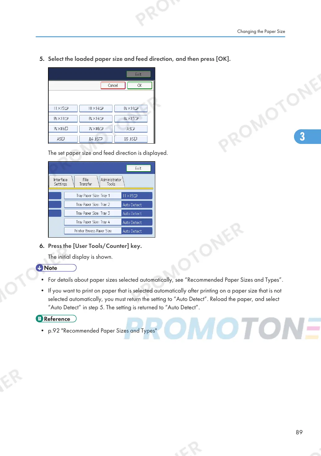 • For details about paper sizes selected automatically, see “Recommended Paper Sizes and Types”.