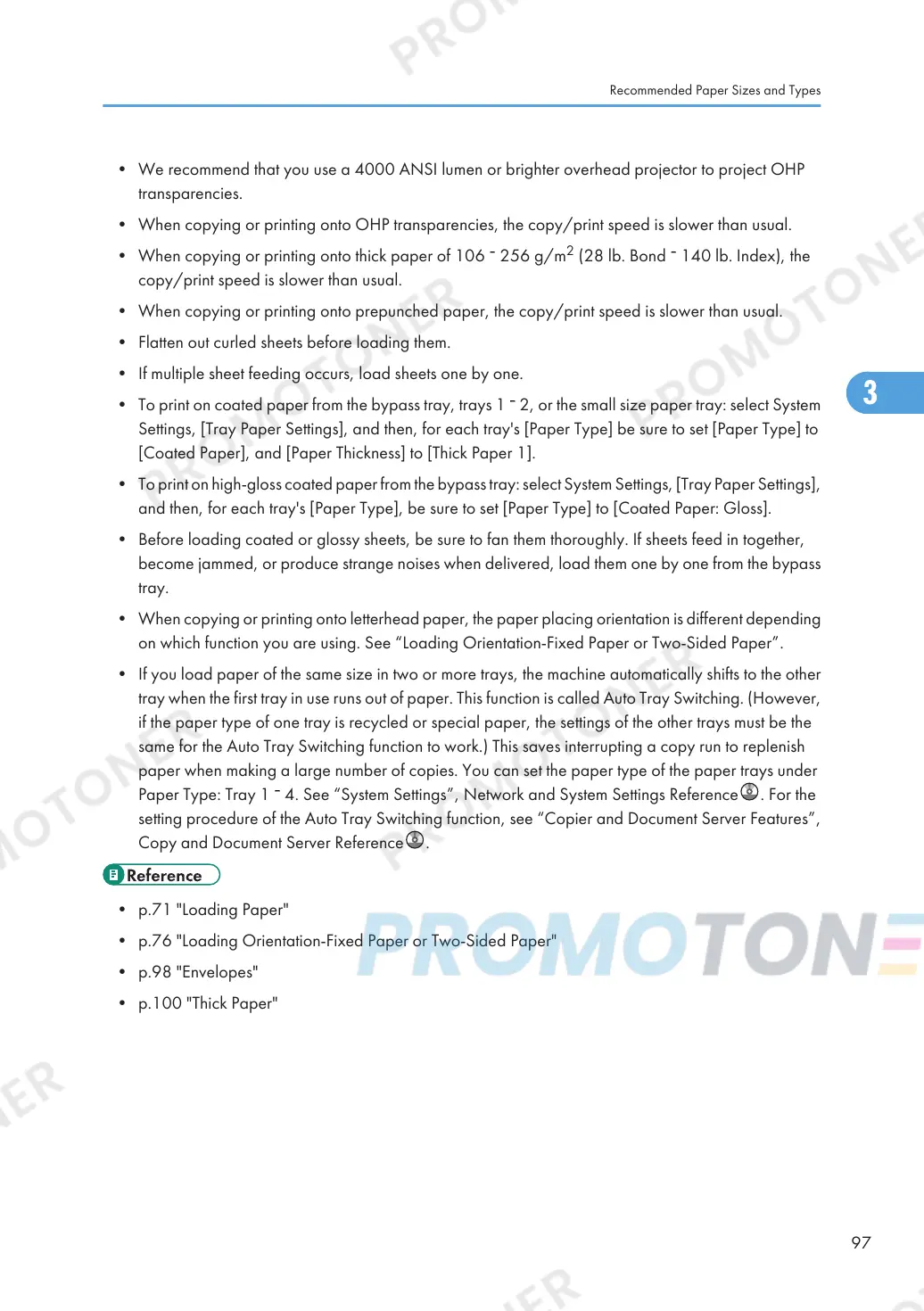 same for the Auto Tray Switching function to work.) This saves interrupting a copy run to replenish