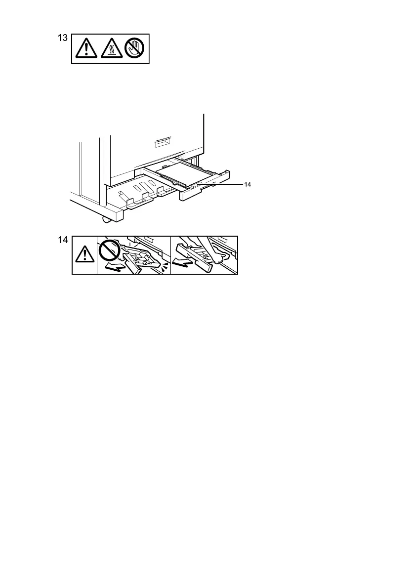 hand. Otherwise the rear of the cut paper tray may fall and an injury may result.