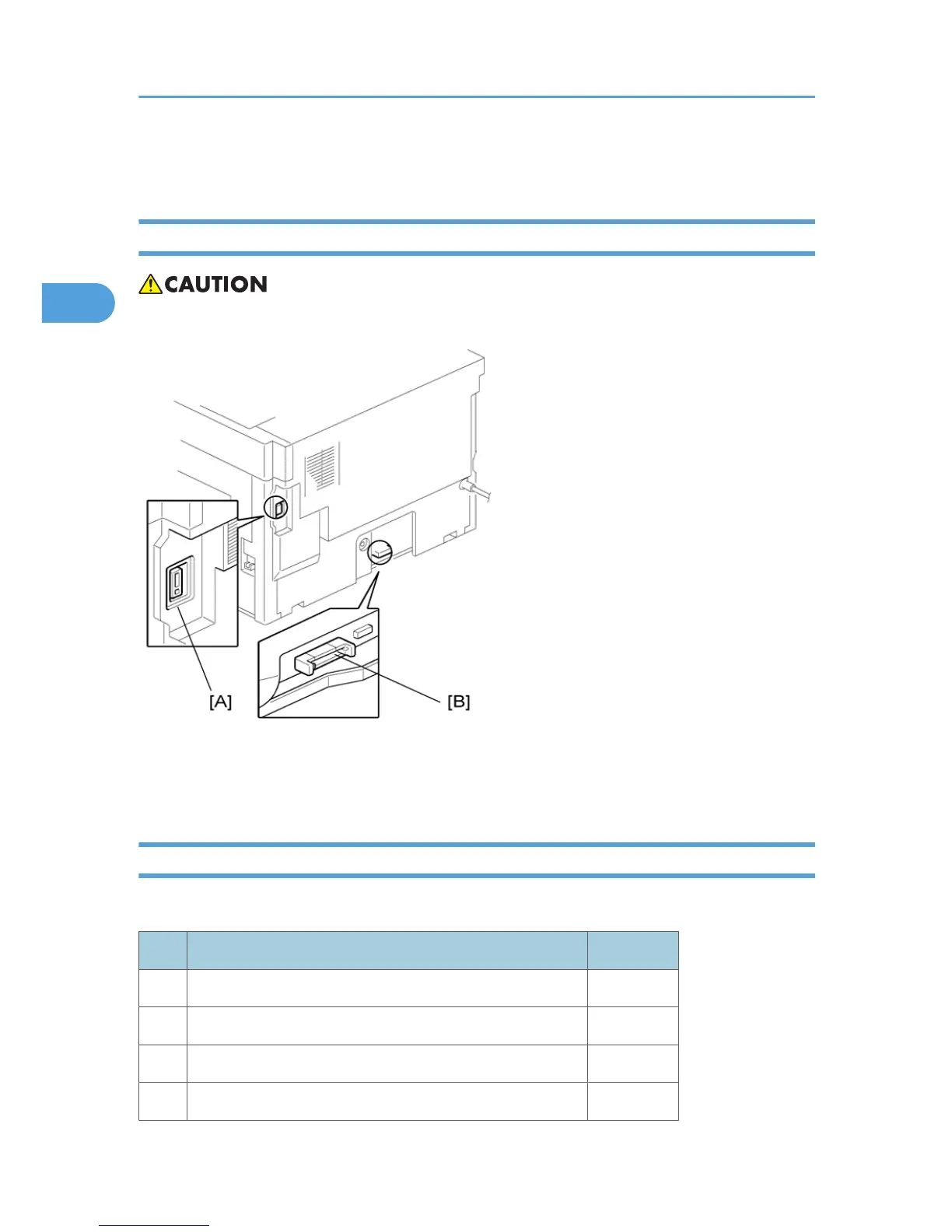 [B]: Socket for paper tray unit (Rated voltage output max. DC24 V)