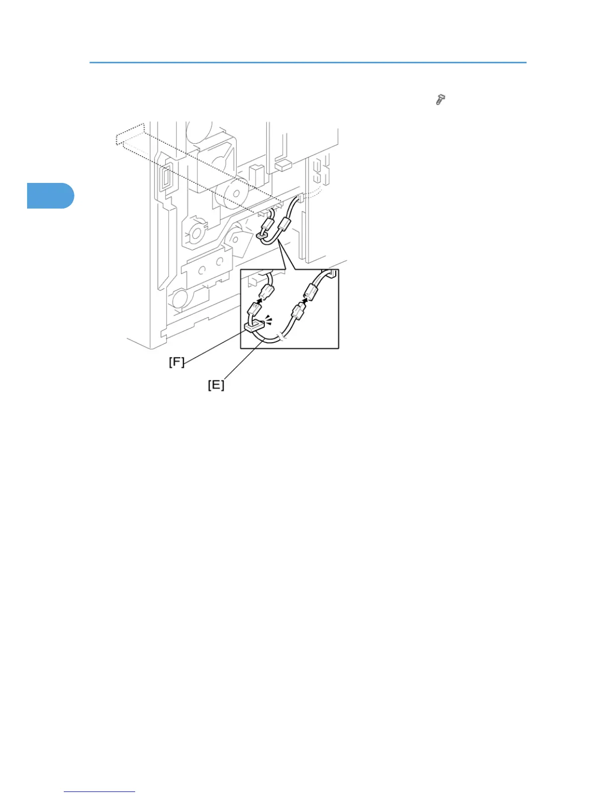 3. Pass the connector [B] through the opening [C] and install the tray heater [D] ( x 1).