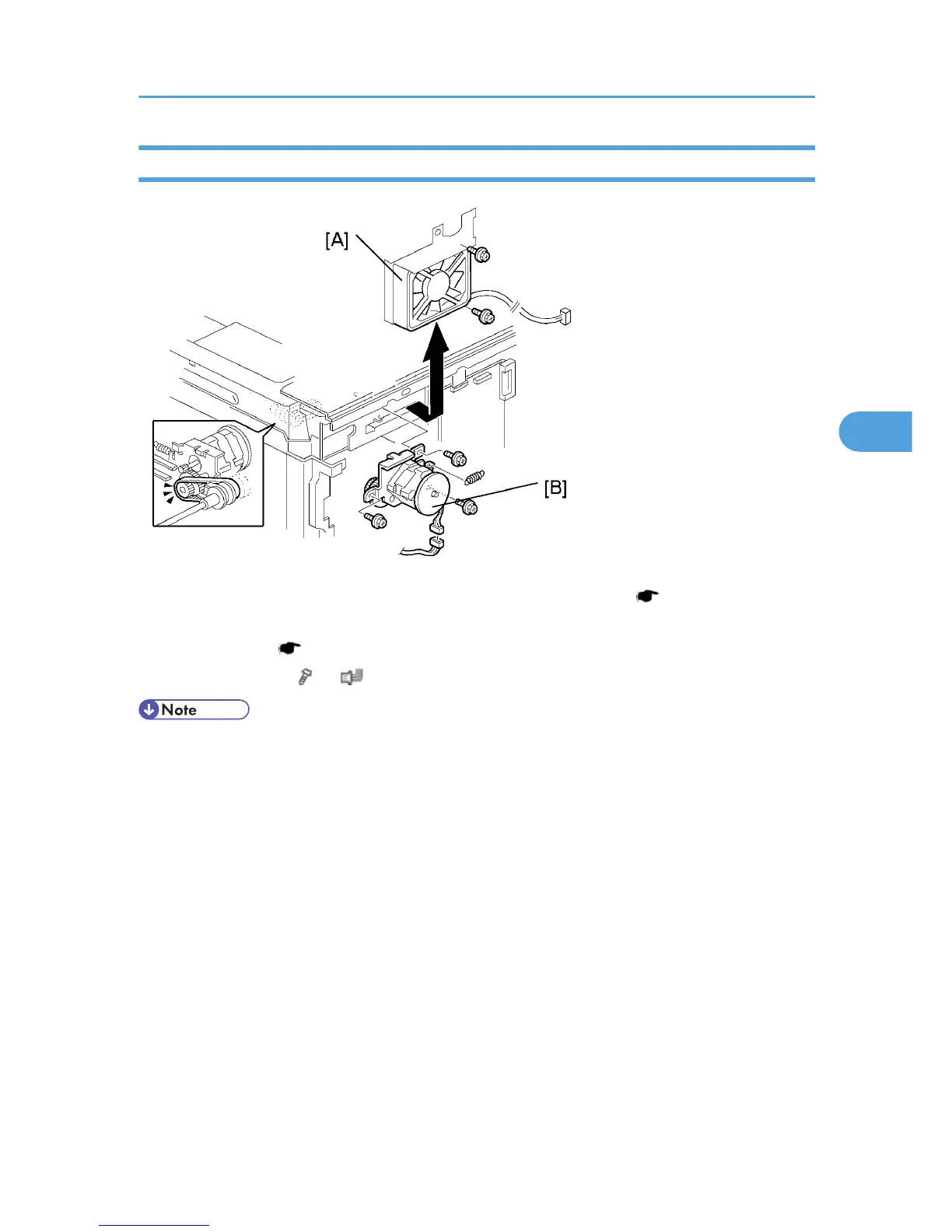 • Install the belt first, and then set the spring when you reassemble. Fasten the leftmost screw (viewed