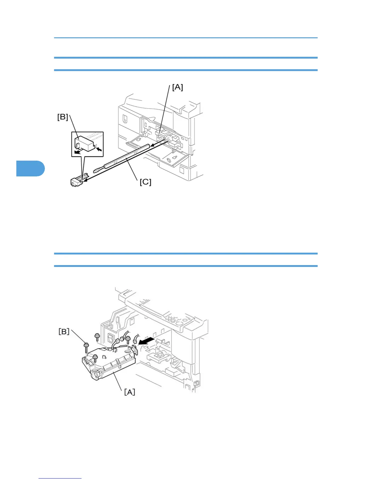 3. Press the toner shield glass cover [B] to the left and pull it out.
