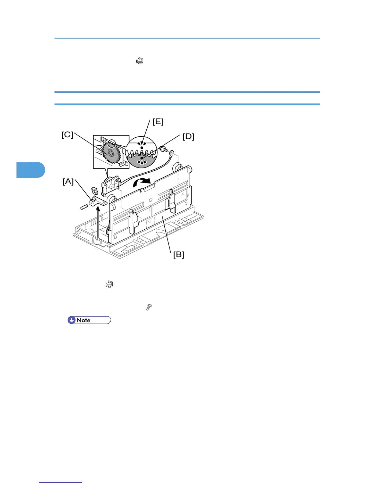 fully open and fully closed), and install the round gear so that the hole in the gear [D]