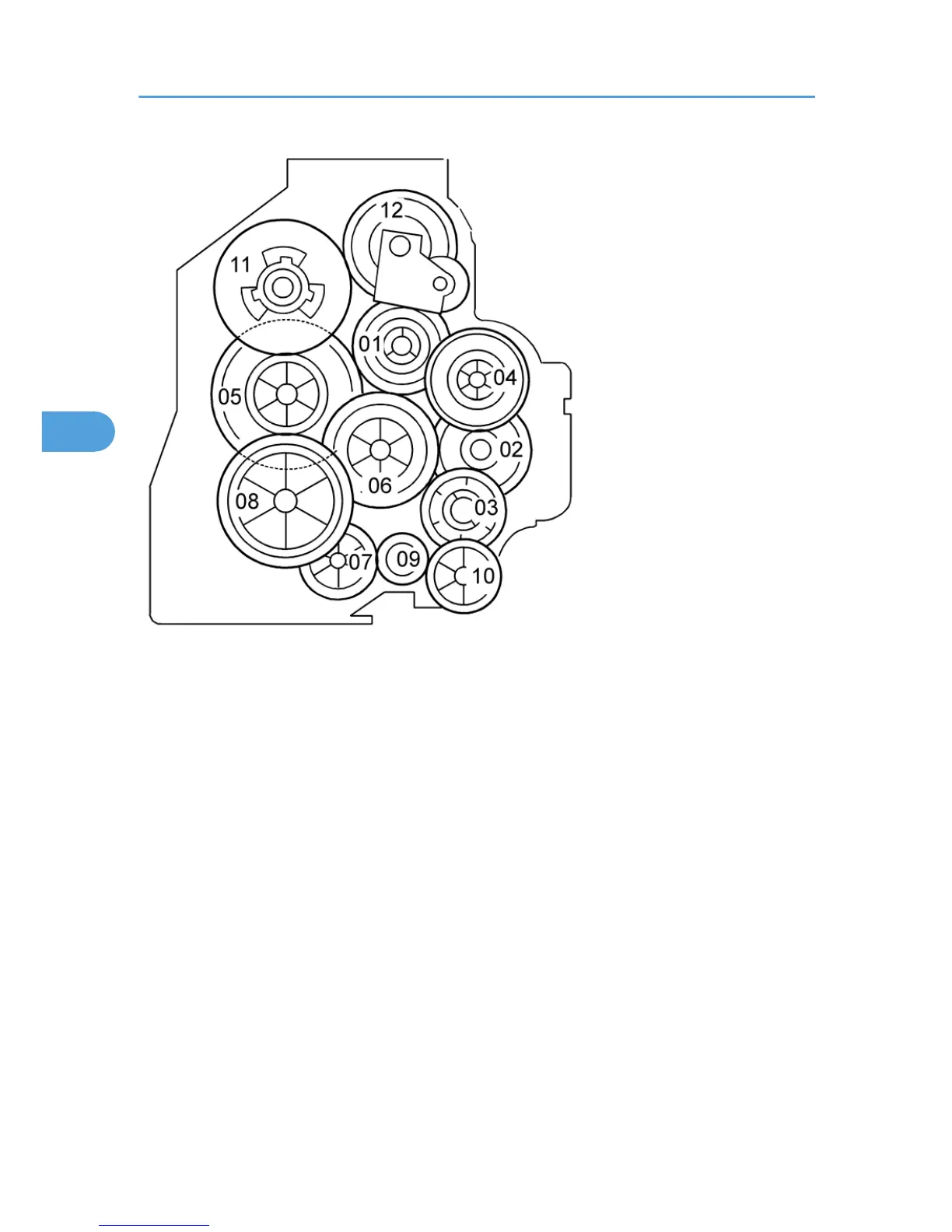 The gears are numbered 1 to 12 in the order in which they are to be installed in the gearbox. These numbers