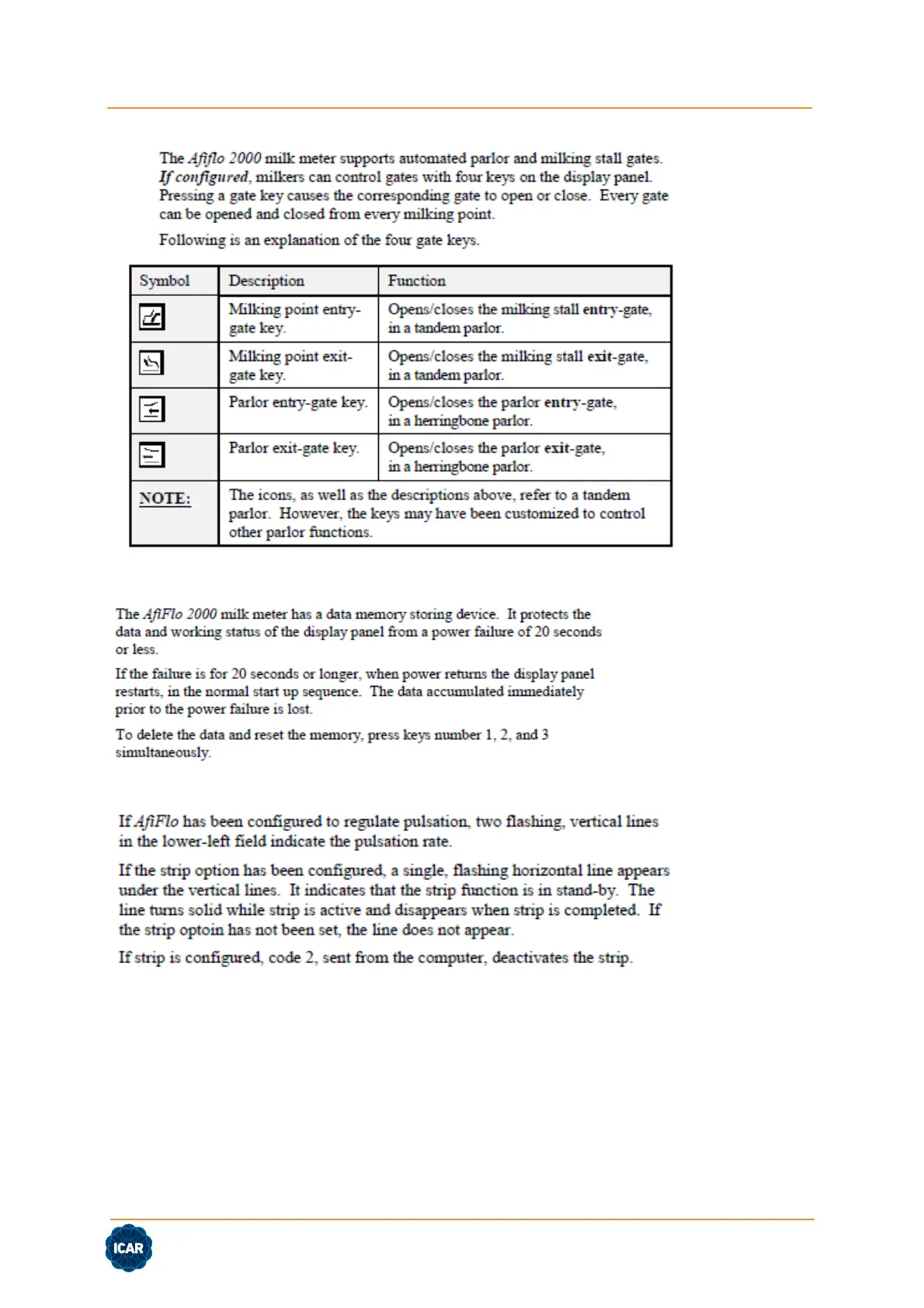 Afikim Afiflo 2000 - Gate Control Functions; Data Storage and Power Failure Handling; Pulsation and Strip Field Indicators