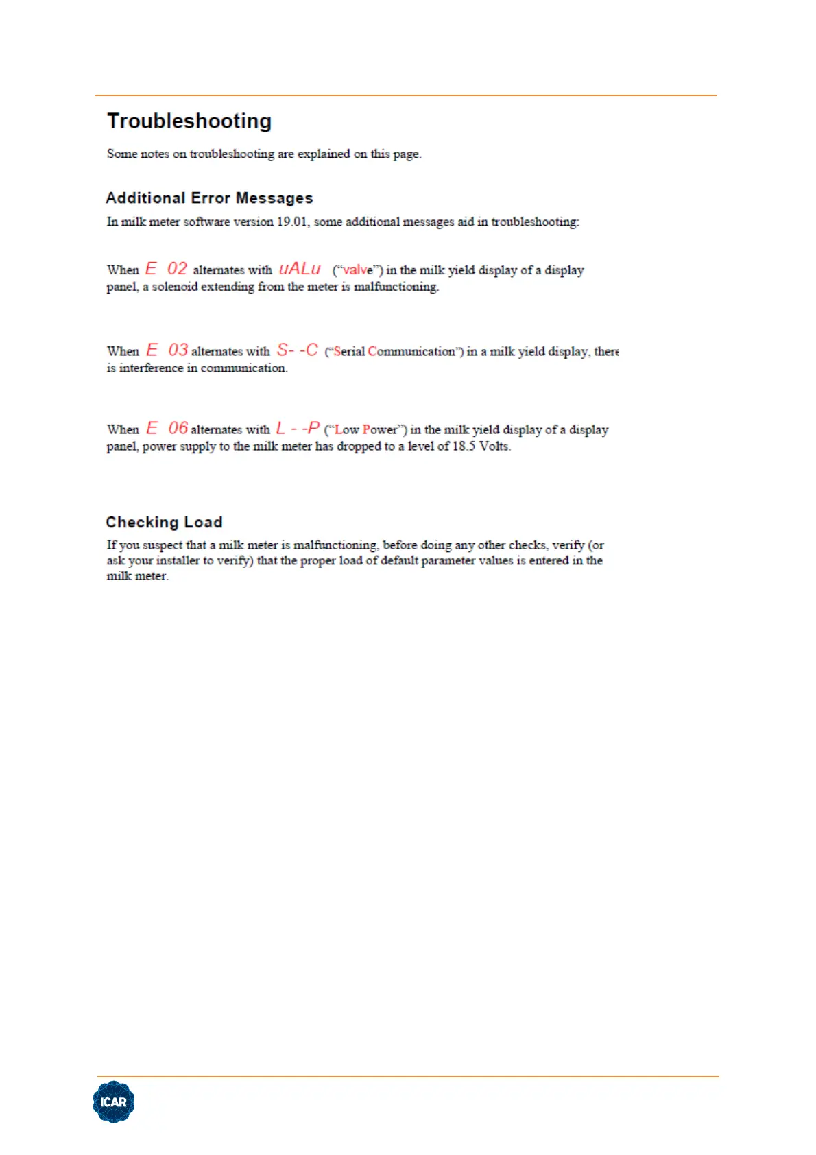 Afikim Afiflo 2000 - Additional Error Messages Explained; Checking Load for Malfunctions