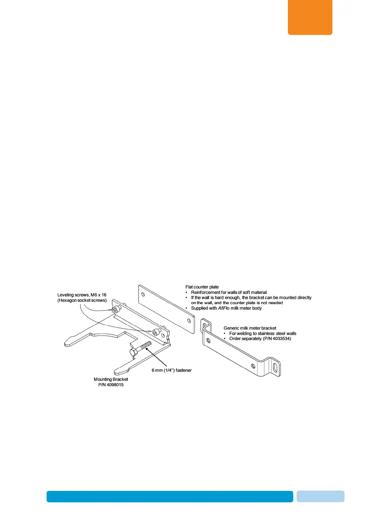 Milk meter body should be level at both axes. When installing the bracket ensure that it is