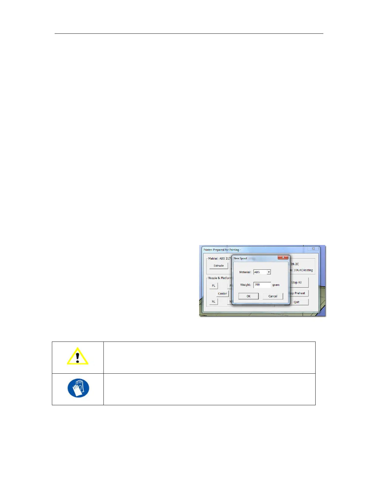 GLOVES: The extruder and platform are hot. Use gloves when working in