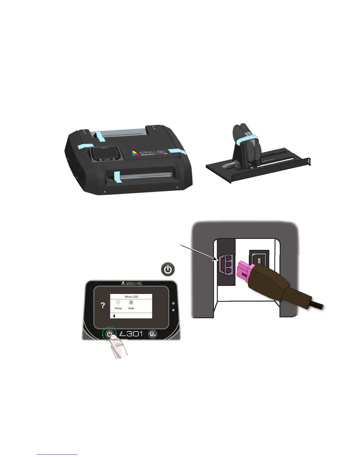 • Remove the packaging tape from the printer cover (x2), label guide (rear), and