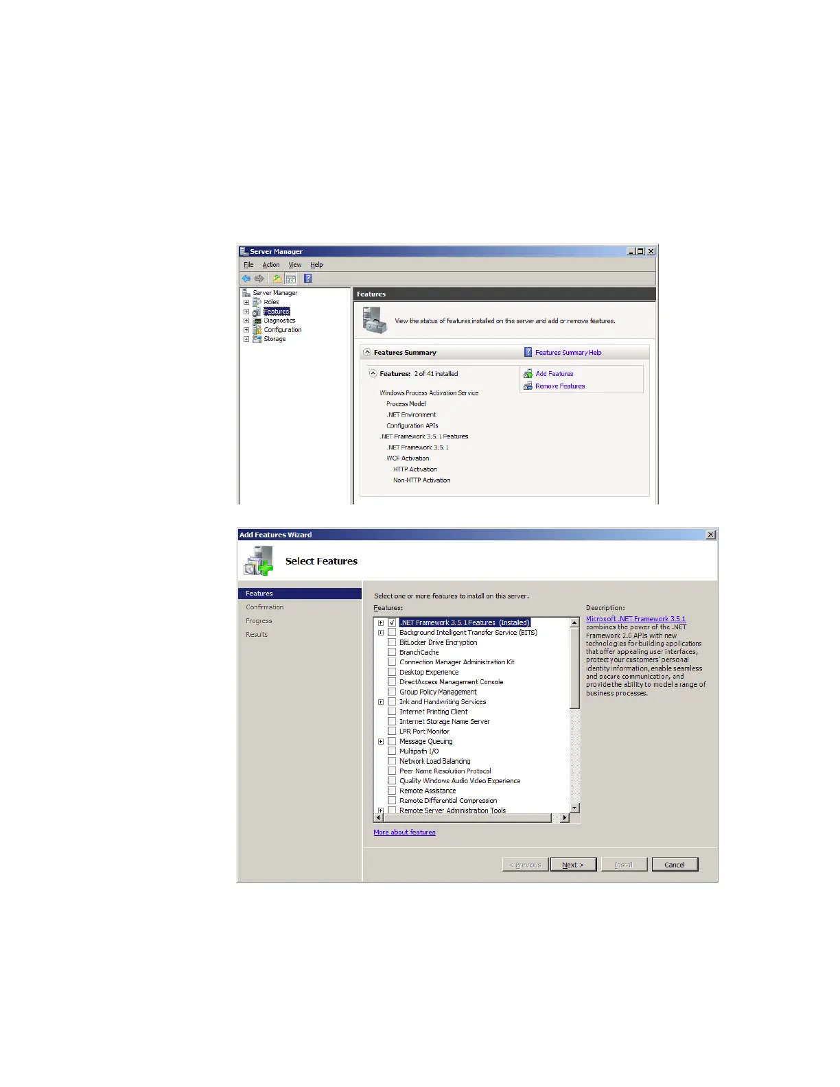 2. ClickFeaturestoviewthestatusofinstalledfeatures.ClickAddFeatures.