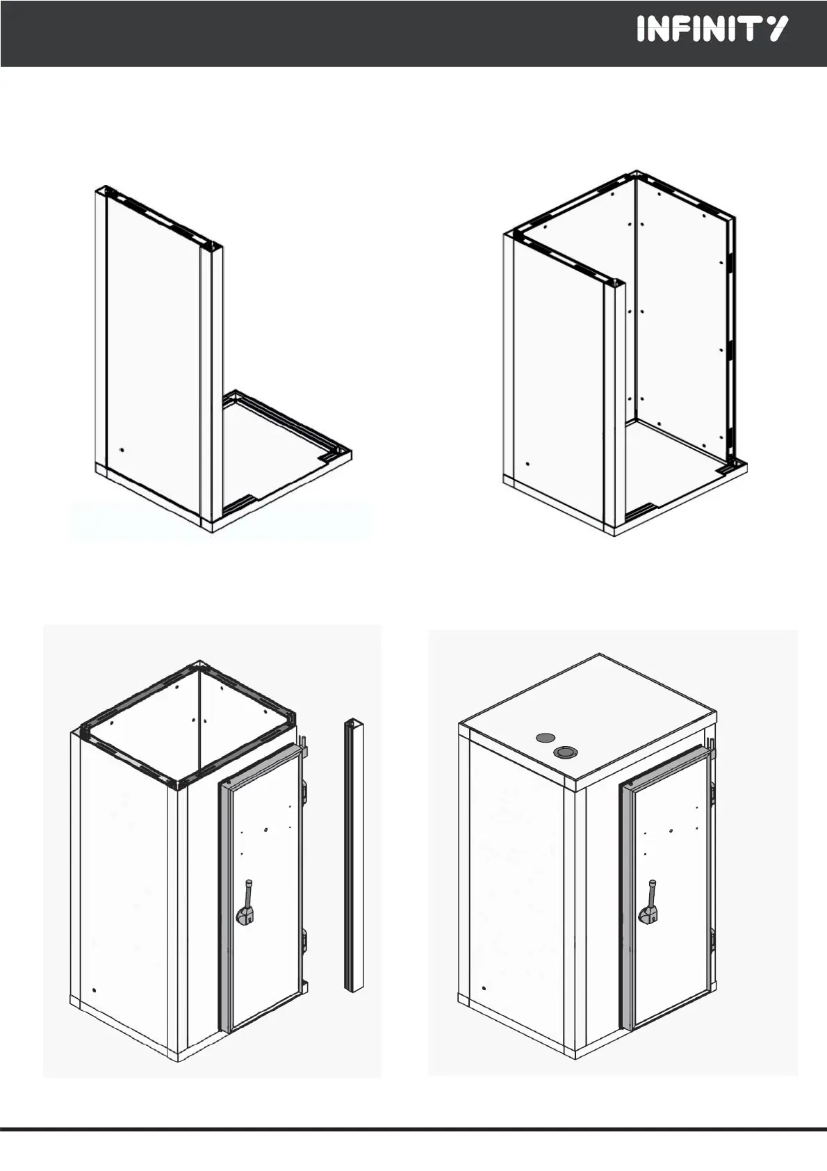 Fasten the door panel and close it with the front upright Lastly, fasten the hood and apply the hole-lid caps