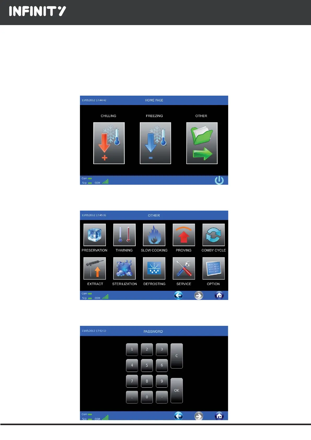 The other machine functions are displayed by 10 icons:
