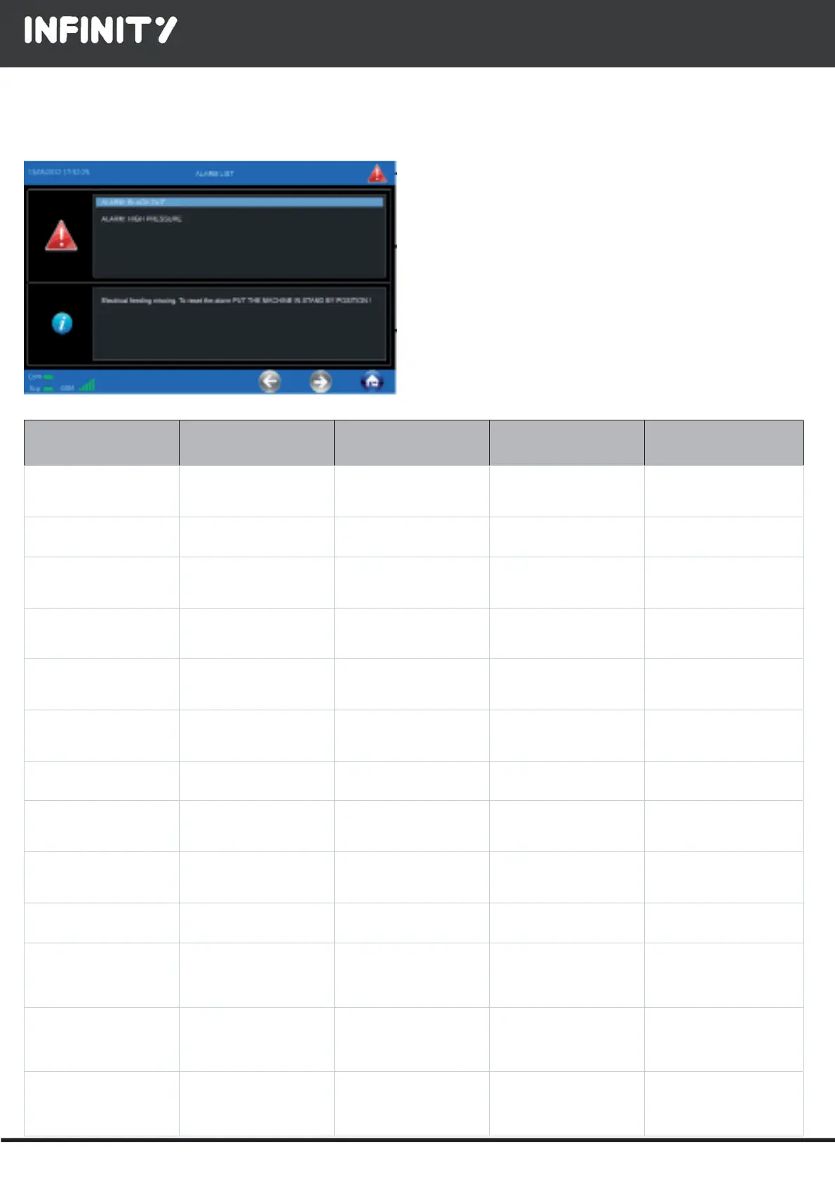 Red triangle Low evaporation alarm Evaporator probe dam-
