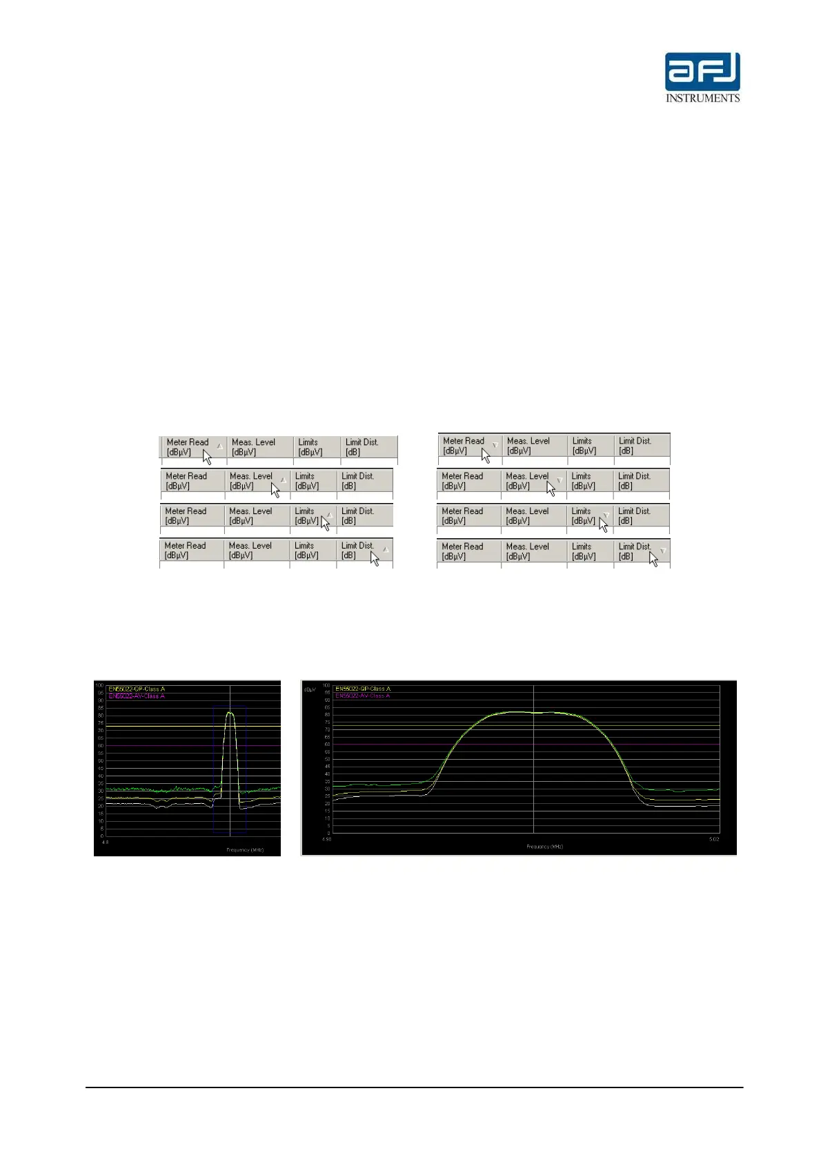 Fig. D.48: Ordering Peak Search table by Meter Read., Meas. Level, Limits, Limit Distance.