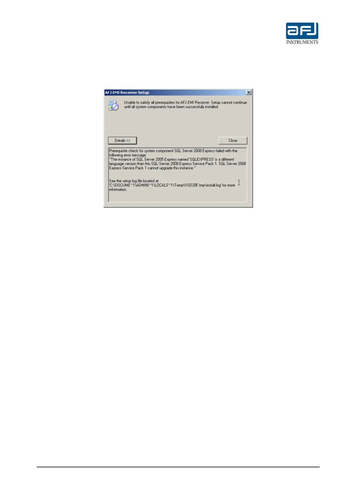 Fig. F.1: Error installing SQL 2008 Express on a system running SQL 2005