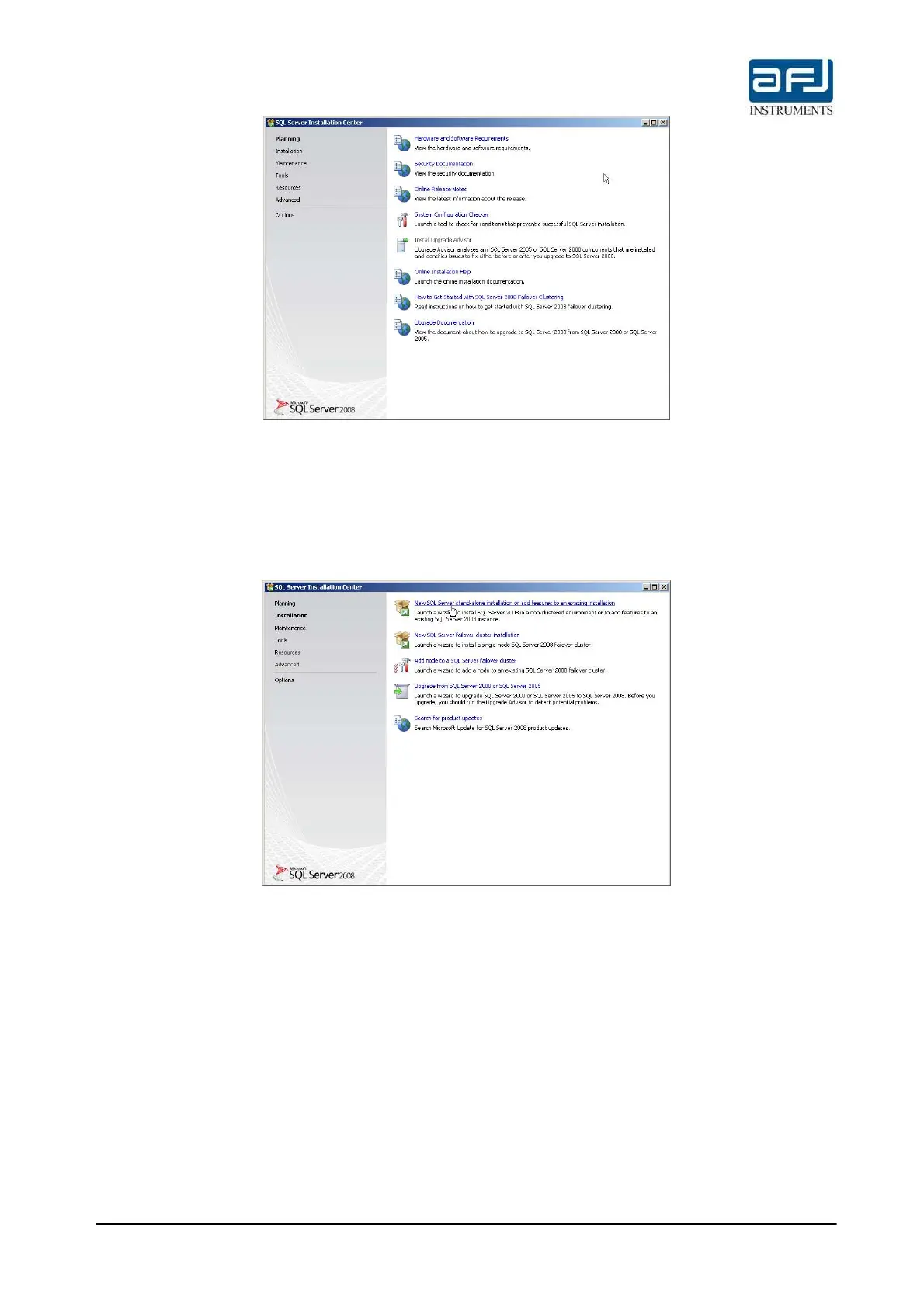 Fig. F.2: SQL 2008 Express: first installation window (SQL Server Installation Center: Planning)