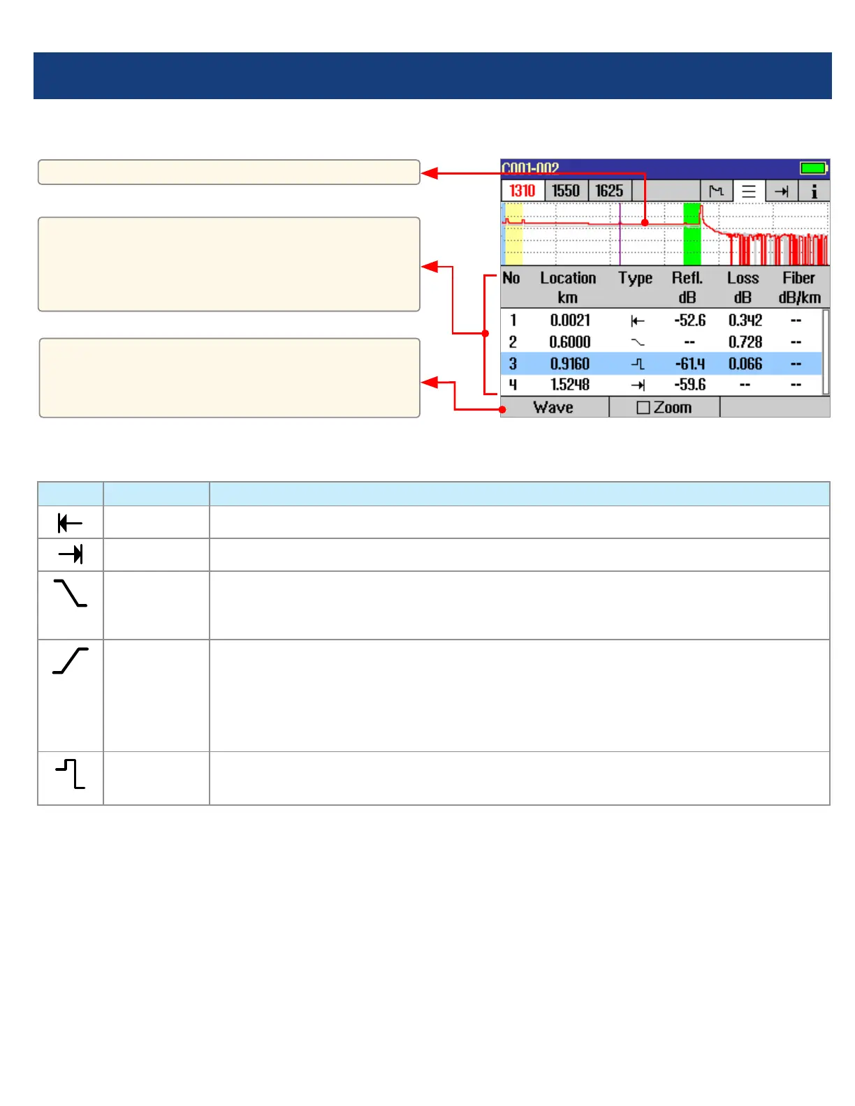 OTDR Mode: Event Table Page Features
