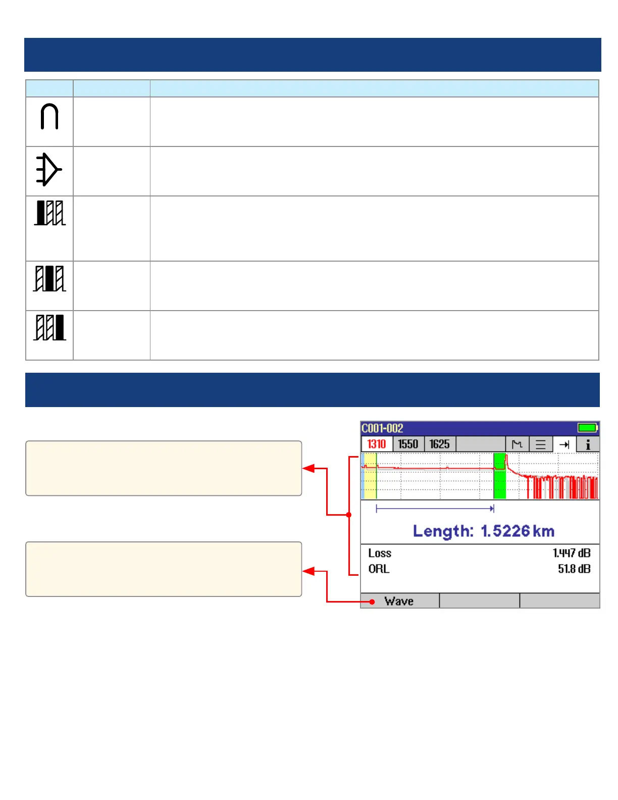 OTDR Mode: Event Table Page Features