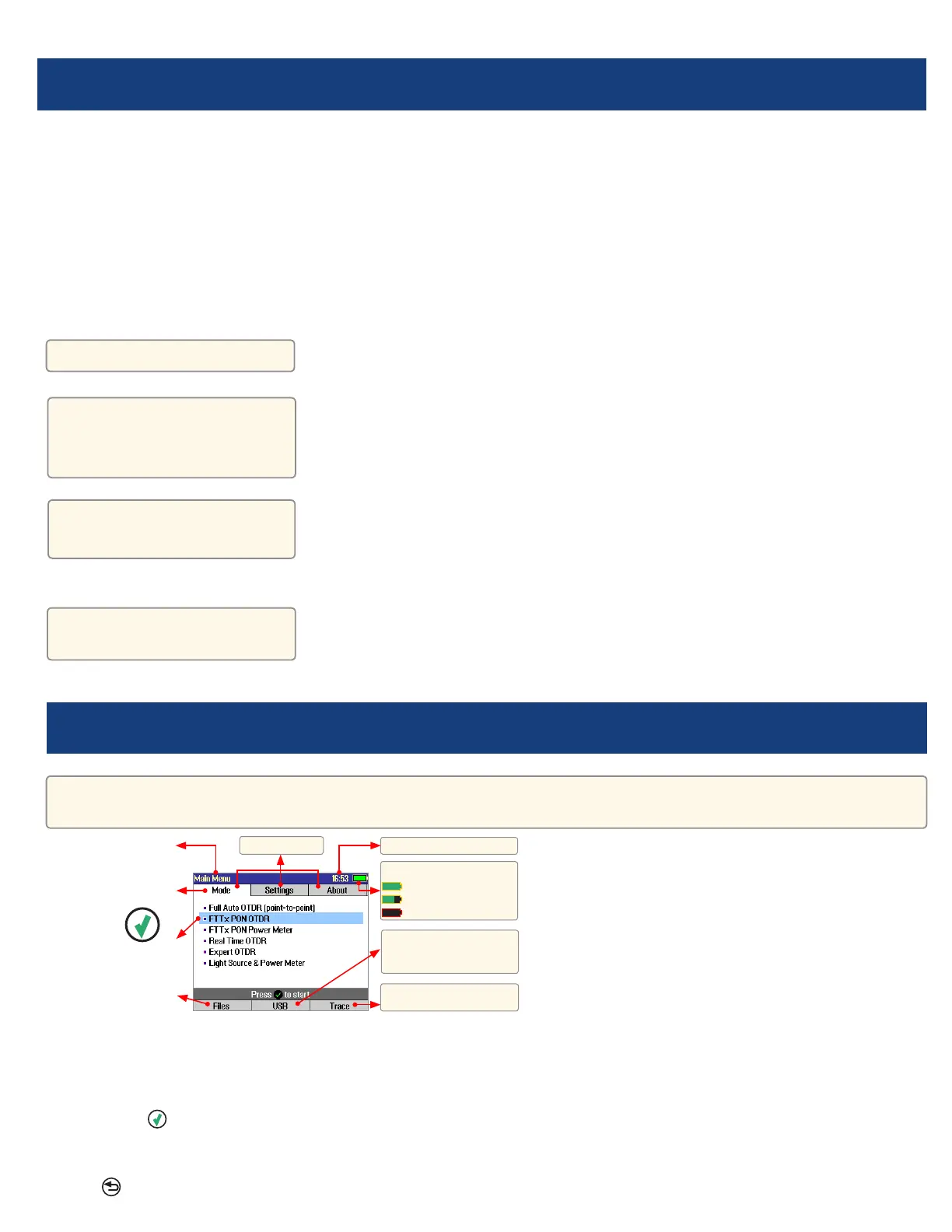 •FTTx PON OTDR combines functions of previous FTTx – In Service and FTTx – PON Construction modes.