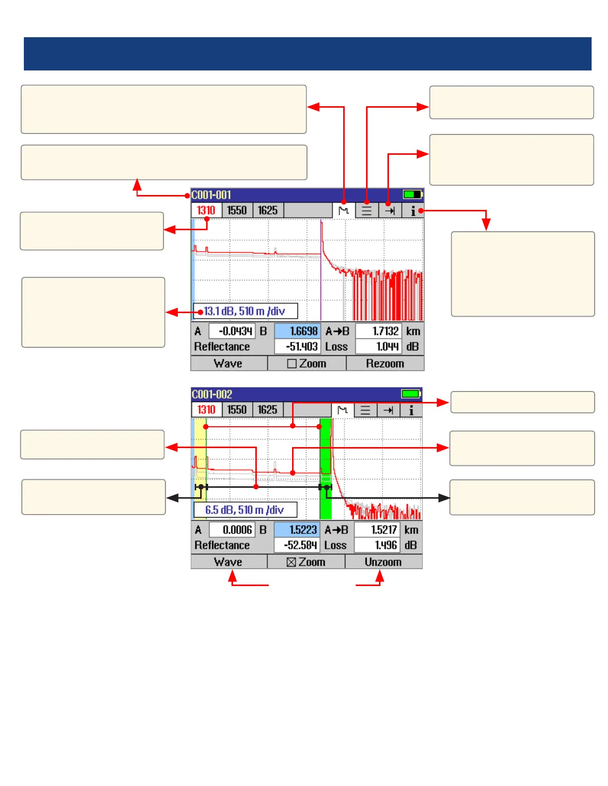 OTDR Mode: Trace Page Features