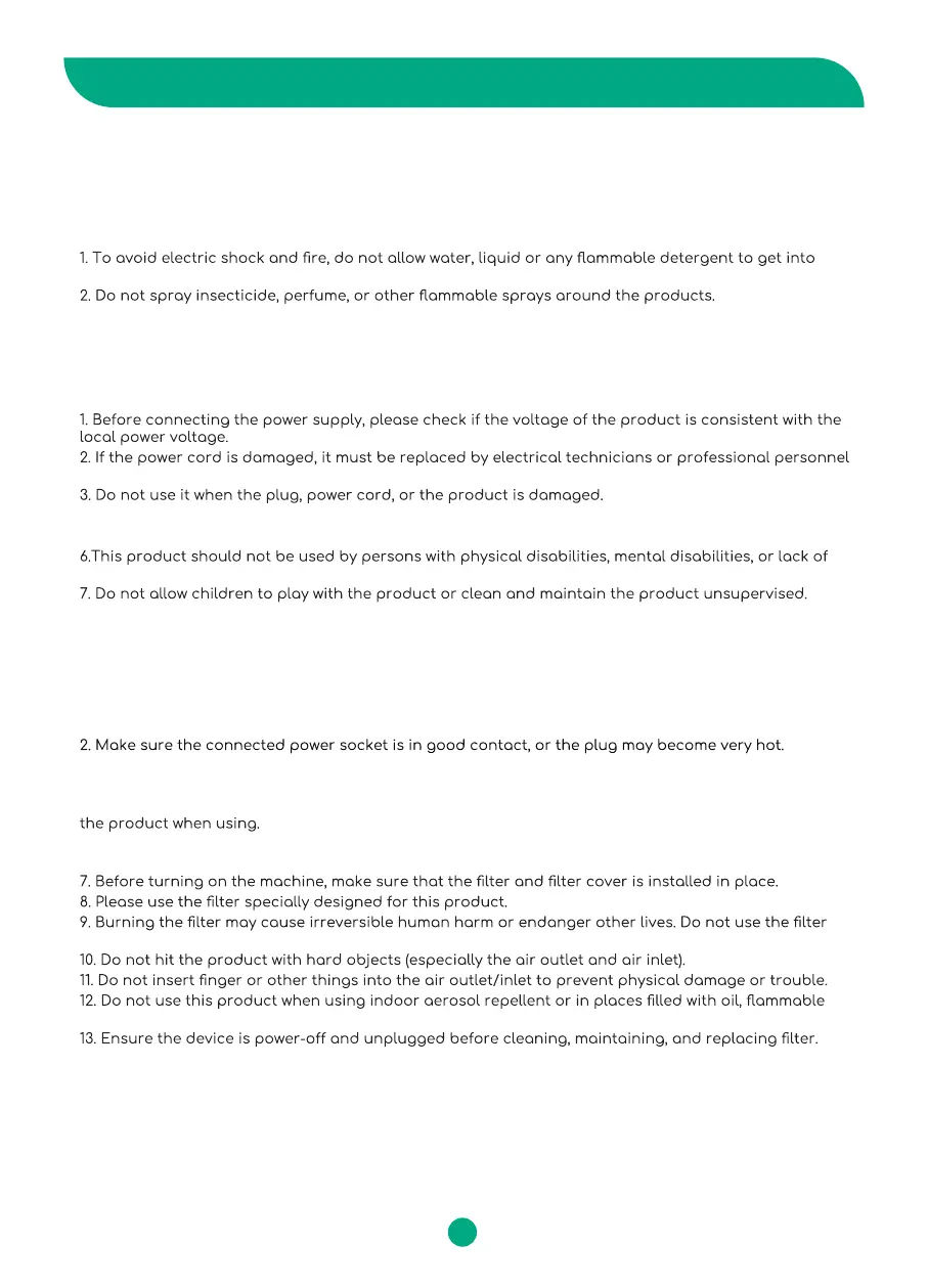 1. This product is not a substitute for normal ventilation, daily vacuuming or cooking range hoods.
