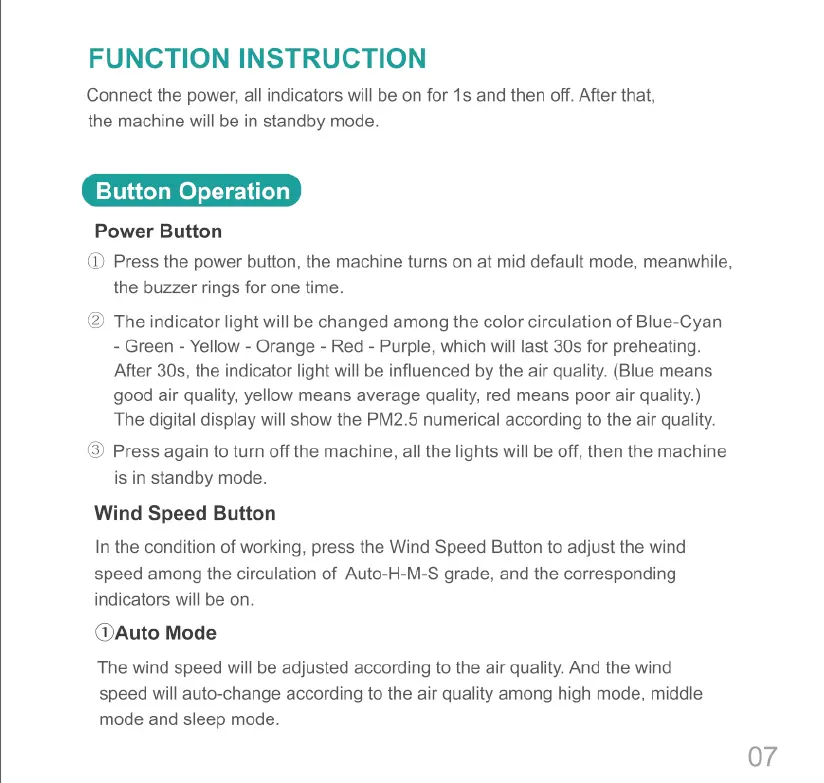afloia MAX - Function Instruction; Button Operation; Power Button; Wind Speed Button