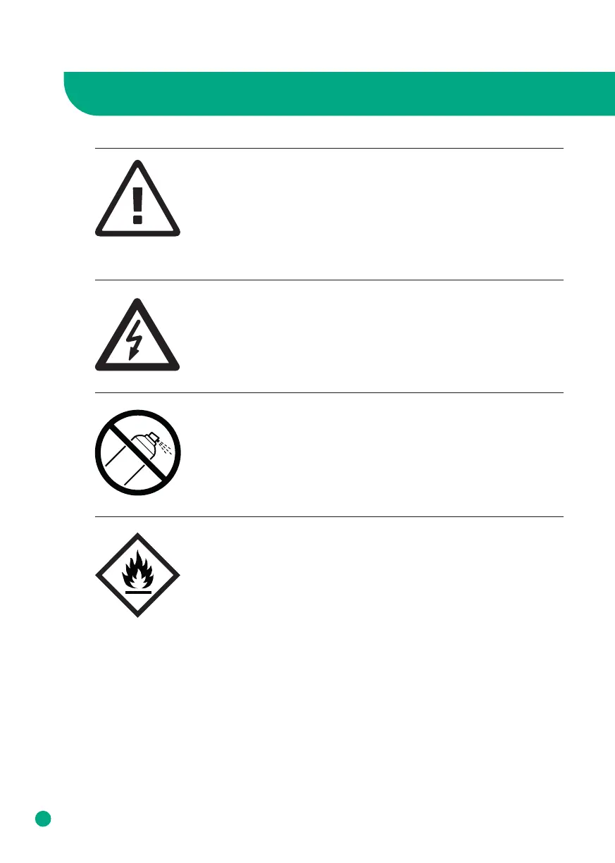 • Do not use any flammable cleaning agents