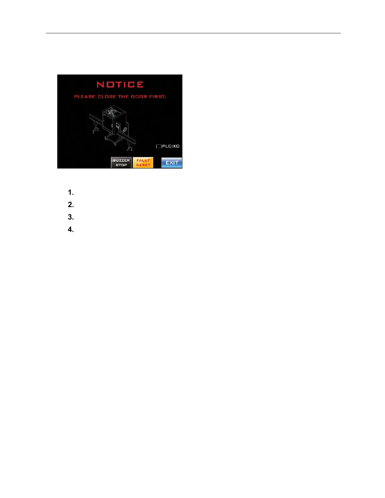 The Front Door is open. As a safety feature, it must be closed when the LX-150 is operating.
