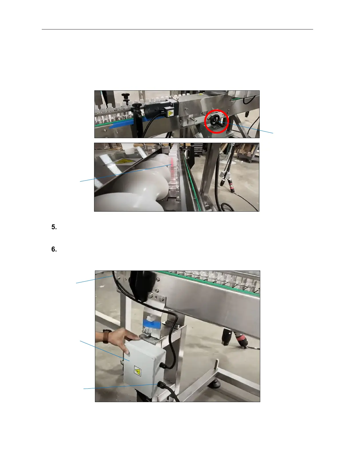 Conveyor until the laser beam is pointing at the center axis of the bottle. As