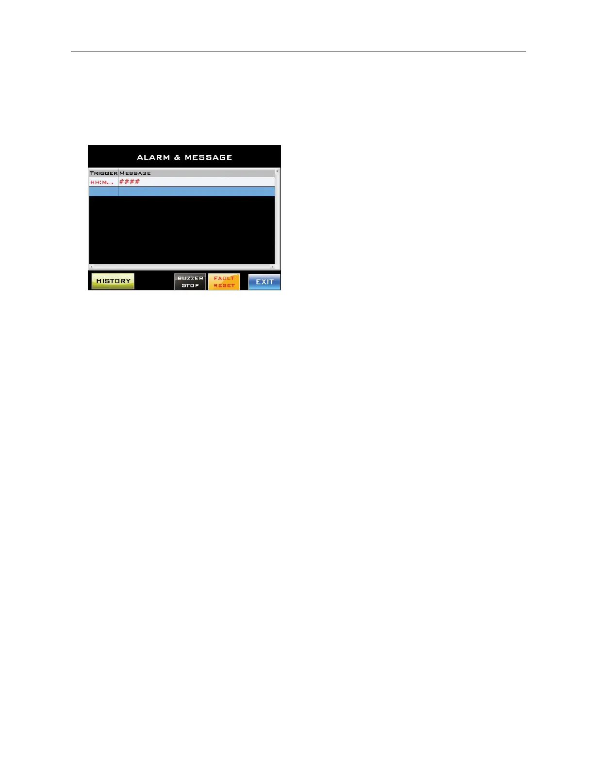 Accesses the History Message Screen displaying a log of the alarms that have been