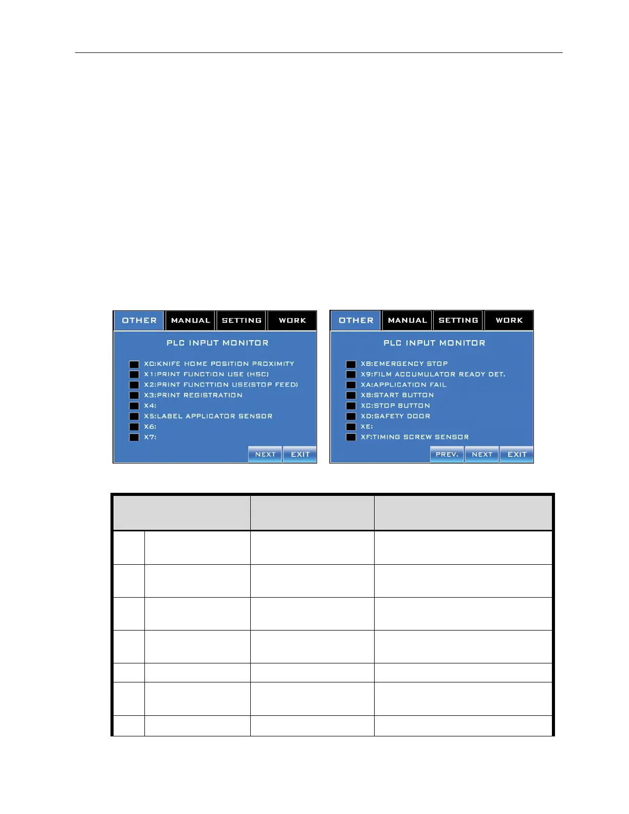PLC I/O Monitor Screens