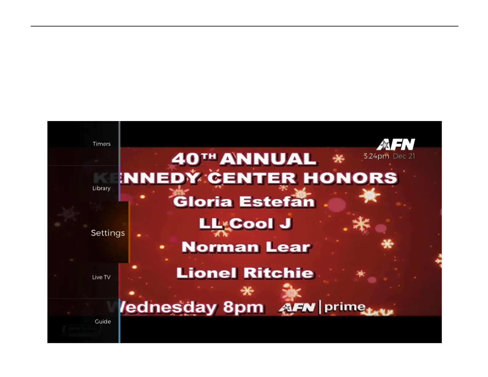 Select the [Menu] button on the remote to access the menu and use the [/] to navigate to Settingsand press the [OK] button to