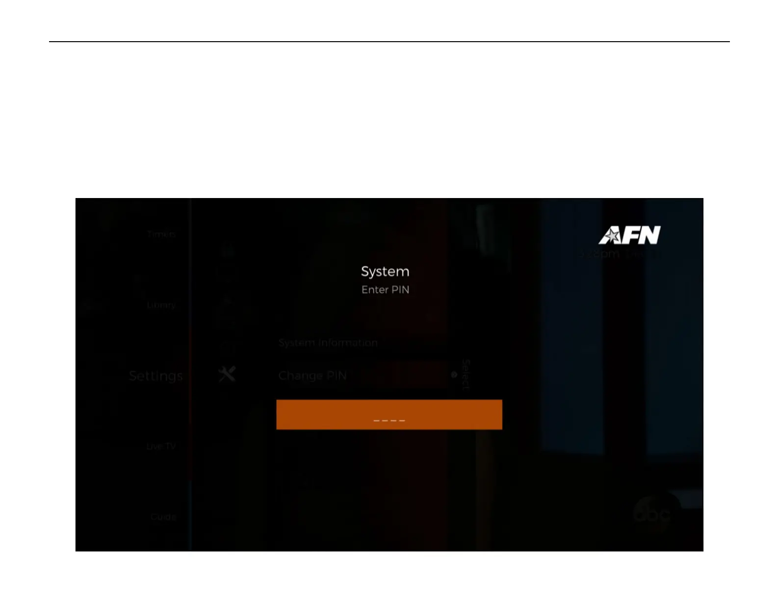 The Change PIN settings can be found under [Menu] > ‘Settings’ > ‘System’ > ‘Change PIN’.