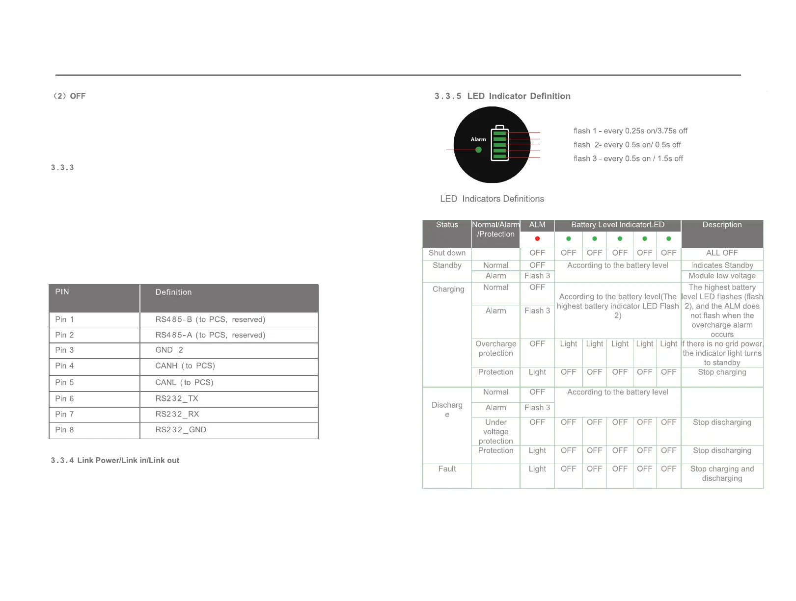 Link Power/Link in/Link out are used for the communication between the battery packs.