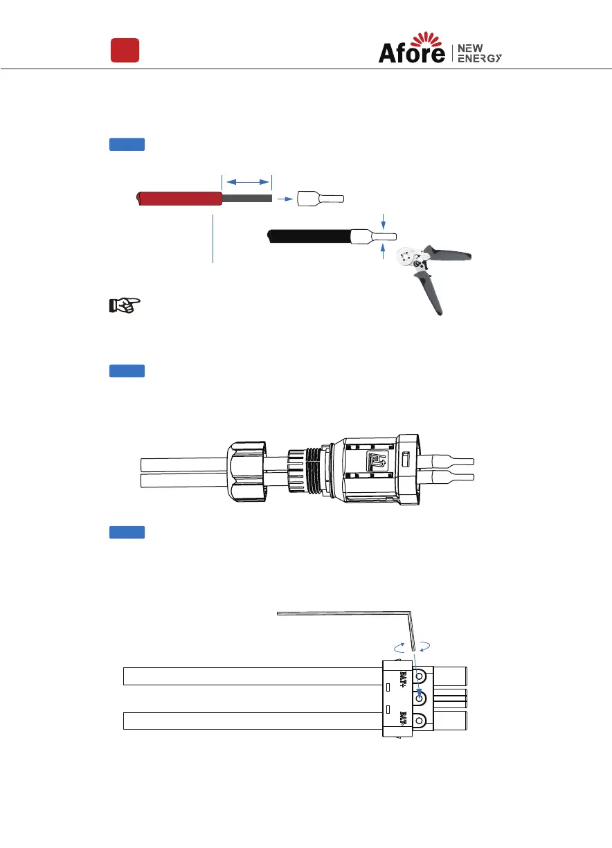 Insert the wire harness into the terminals according to “+” and “-” polarity, make the