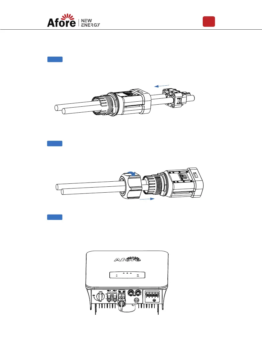 Insert the battery connector into the inverter, if hear a “click”, it means the battery